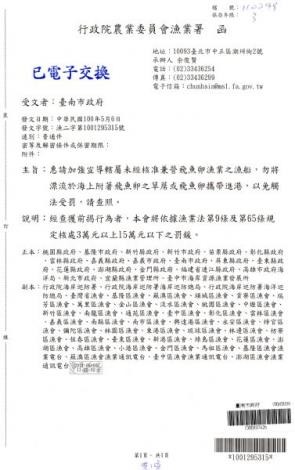 宣導未經核准兼營飛魚卵漁業之漁船,勿攜帶飛魚卵進港以免觸法受罰